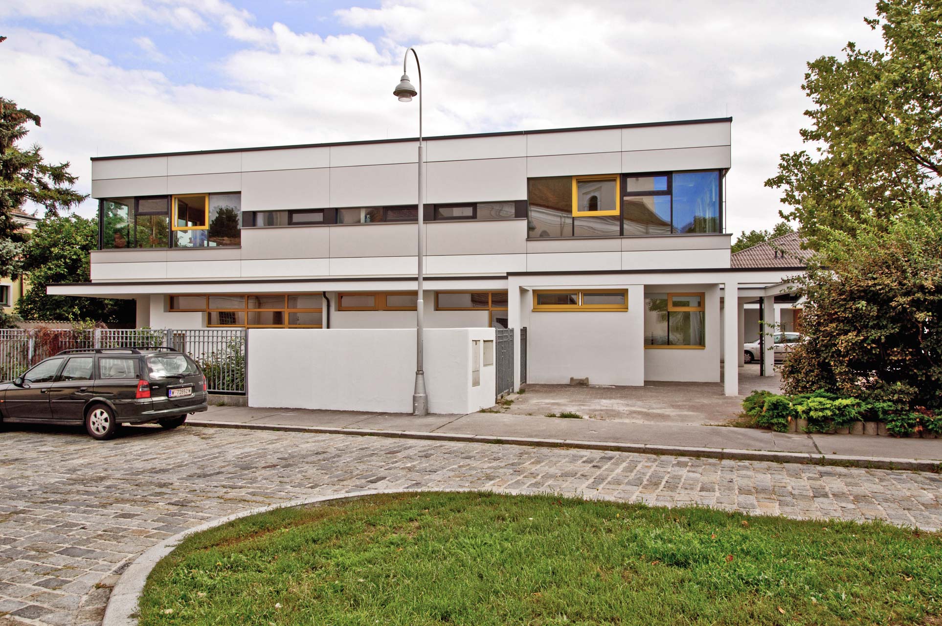 ein als teil des pfarrzentrums bestehender kindergarten mit 2 gruppen wurde in holzbauweise aufgestockt und um 4 gruppen erweitert.